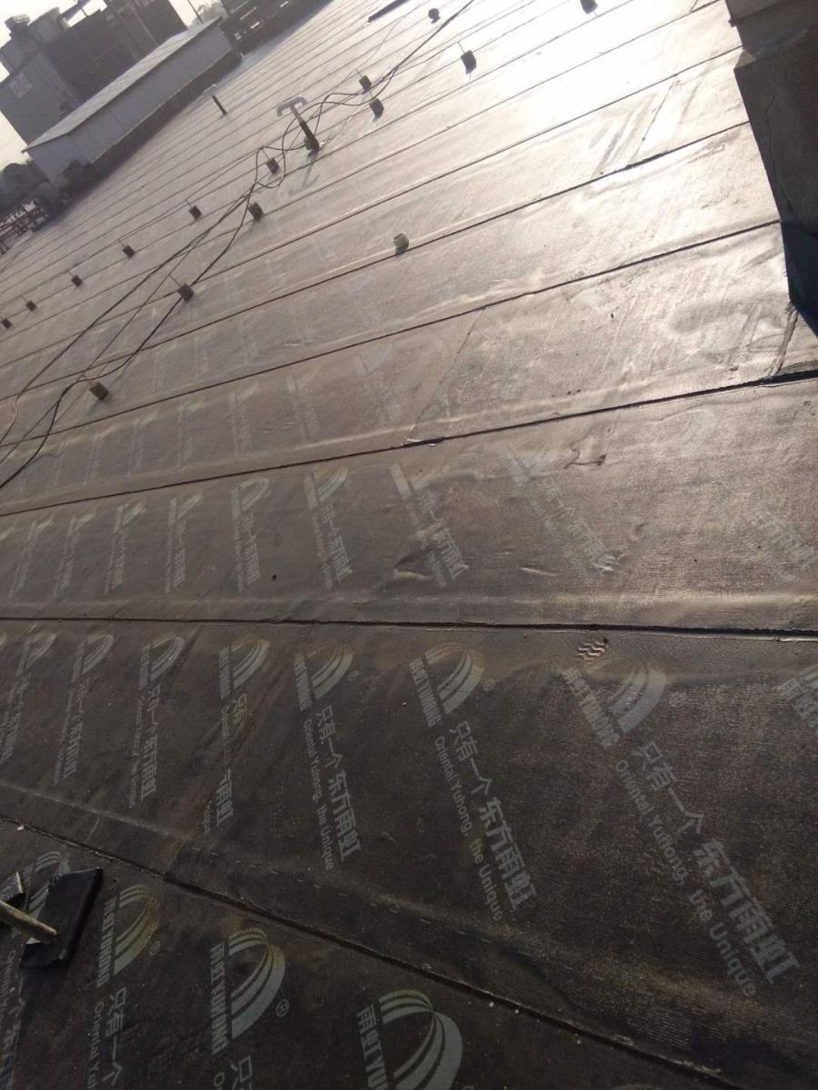 4.防水卷材鋪貼時要避免過度拉緊和皺折,基層與卷材間排氣要充分,向橫向兩側排氣后用輥子壓平粘實。