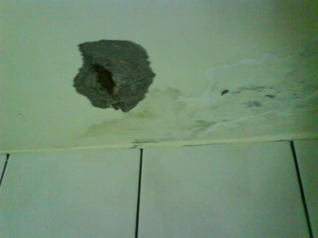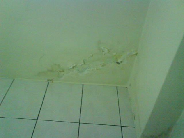 屋頂防水抓漏-民宅油漆修繕 上圖可以看出天花板滲水已有一段時間,掉落的水泥漆粉末實在讓人很頭痛,看起來又很難看,又影響呼吸道的健康.若只是施作油漆補修也是無效,要從根本治療才無后顧之憂